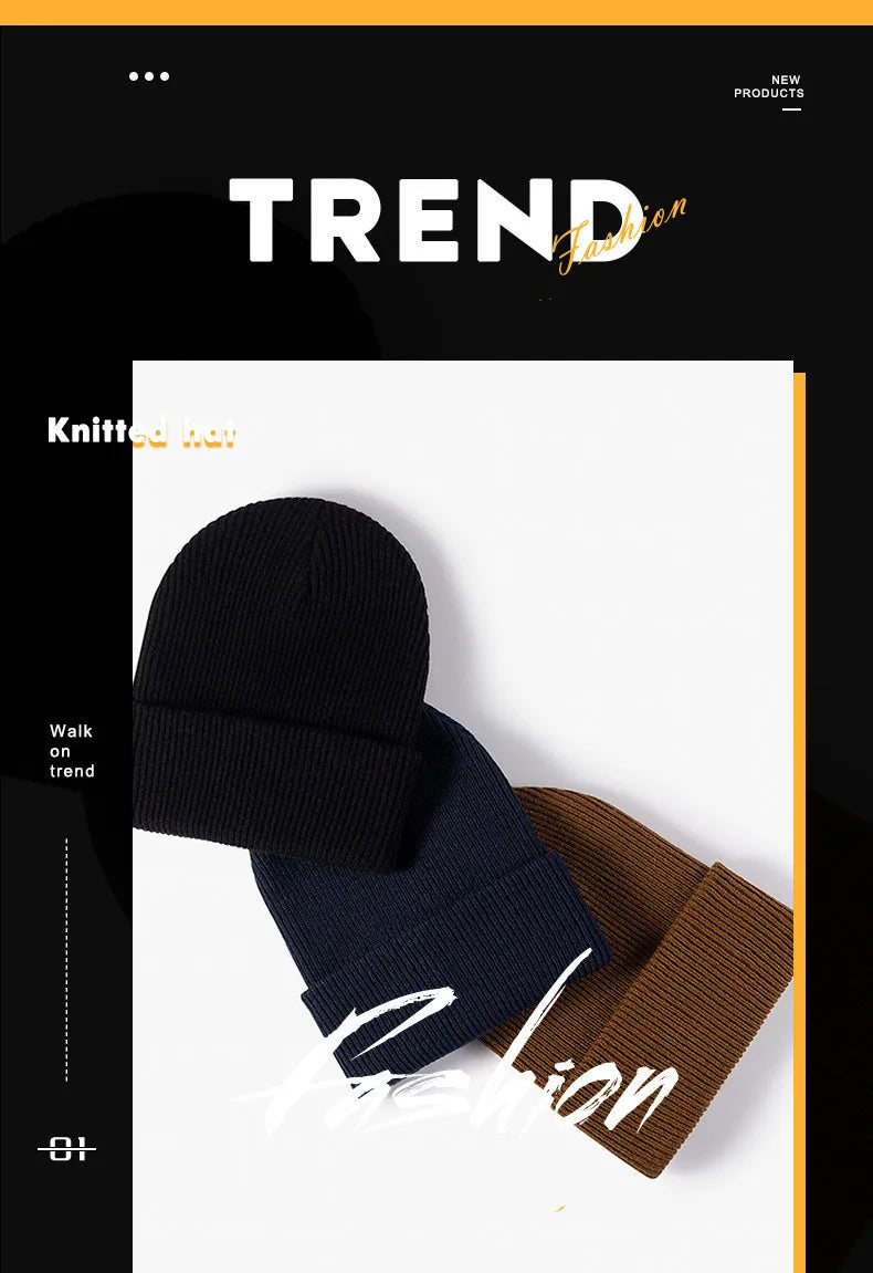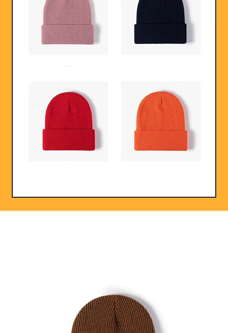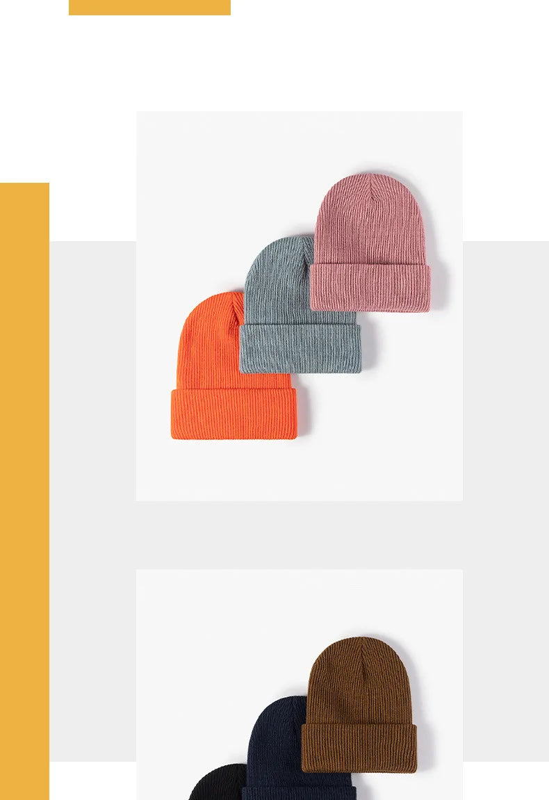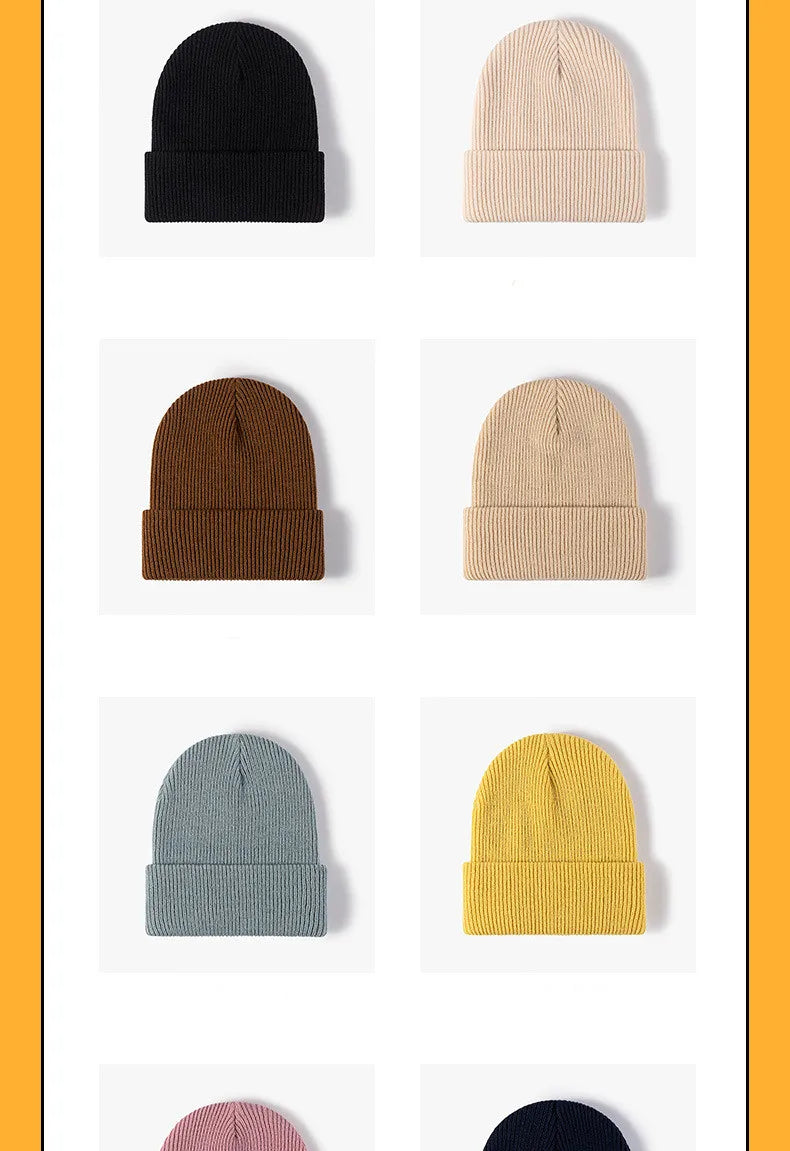 New Women Men Autumn Winter Warm Beanie Hat Solid Color Lady Male Stretch Knitted Crochet Beanies Hat Cap For Women Men